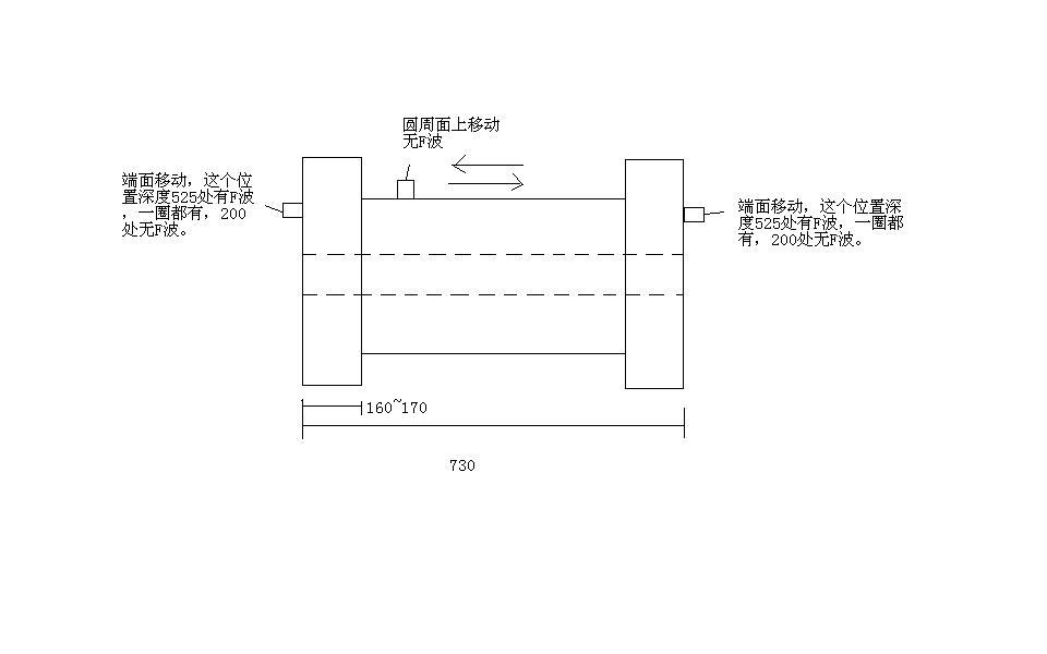 20個鍛件里,有1~2個有這種波形,其他的沒,表面沒什么異常,材質(zhì)20Cr4NiA,熱處理后。F波最高波位置如圖所示,探頭下移波形降低,但不會消失,一圈都有,請問這個F波是缺陷還是邊緣反射波?我的理解是如果是缺陷波的話,從對面探應(yīng)該深度200左右位置應(yīng)該也有缺陷波出來,但現(xiàn)在沒有。請不吝指教,謝謝