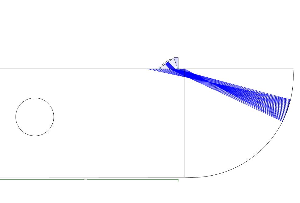 我用聲束模擬軟件模擬了下,確實會存在我說的情況-入射點不在探頭之上。