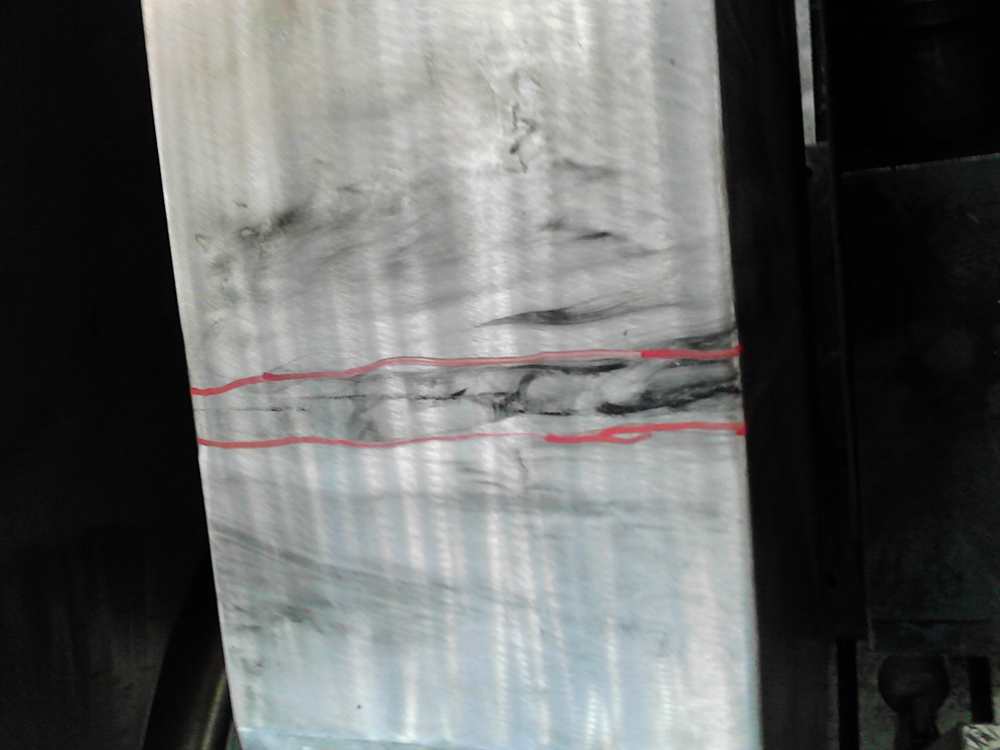 我從事的是船用曲軸的生產的檢查工作 ,今天我們這里發現了一個長度300毫米的一個裂紋,請大家解釋一下原因?     工作流程:我們單個曲臂毛胚面做過超聲波合格后精加工,精加工后做過一次磁粉和超生合格后加熱套在一起 ,最終機床加工,然后做過一次磁粉船級社檢驗。但是今天整根下機床打磨的時候發現側面長度280毫米的裂紋并且向兩端面延伸20~30(毫米)  下面是圖片希望大家給與解釋?