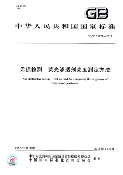 GB/T 33877-2017 無損檢測 熒光滲透劑亮度測定方法