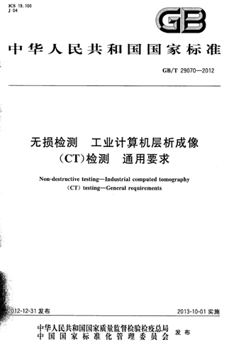 GB/T 29070-2012 無損檢測 工業計算機層析成像(CT)檢測 通用要...