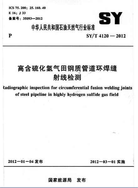 SY/T 4120-2012 高含硫化氫氣田鋼質管道環焊縫射線檢測