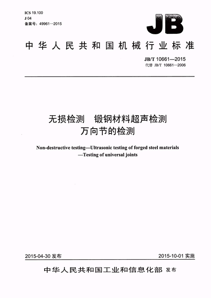 JB/T 10661-2015 無損檢測 鍛鋼材料超聲檢測 萬向節(jié)的檢測