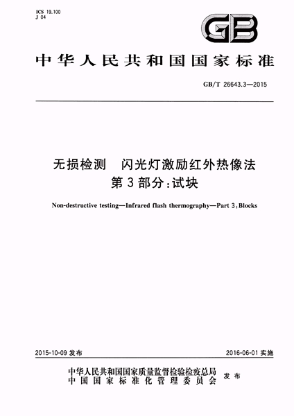 GB/T 26643.3-2015 無損檢測 閃光燈激勵紅外熱像法 第3部分:...