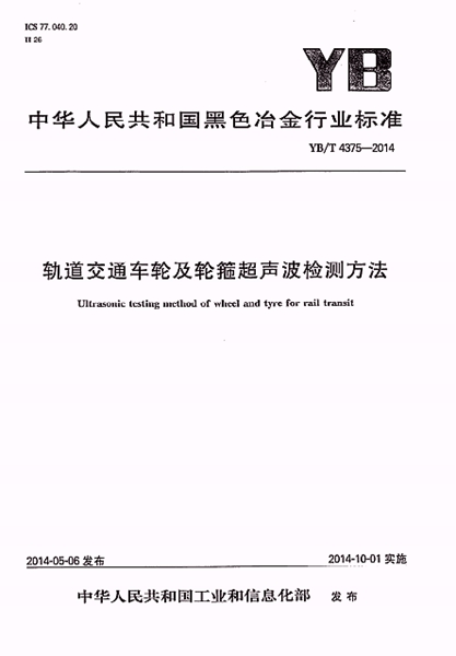 YB/T 4375-2014 軌道交通車輪及輪箍超聲波檢測(cè)方法