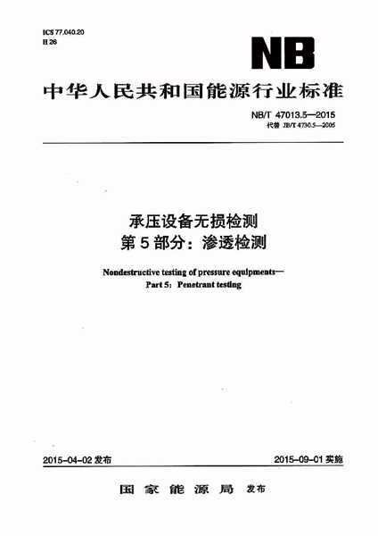 NB/T 47013.5-2015 承壓設(shè)備無損檢測 第5部分:滲透檢測