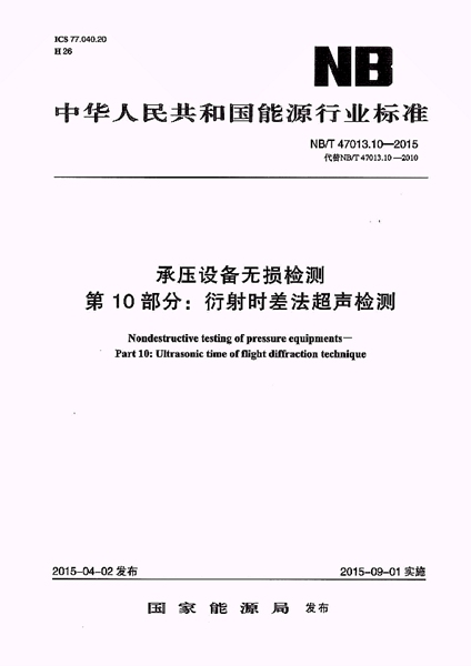 NB/T 47013.10-2015 承壓設備無損檢測 第10部分:衍射時差法超聲...