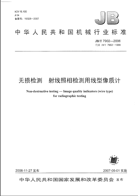 JB/T 7902-2006 射線照相檢測(cè)用線型像質(zhì)計(jì)