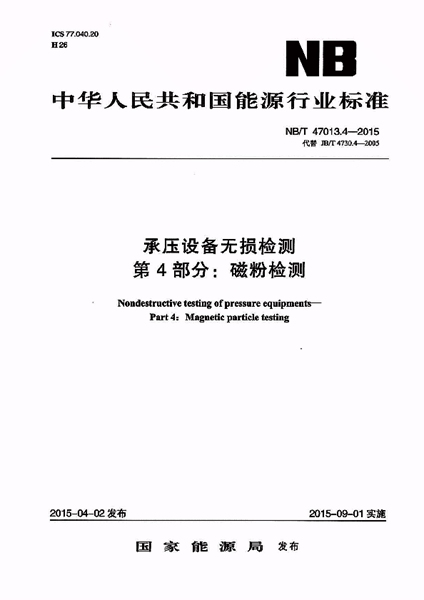 標準名稱: 承壓設備無損檢測 第4部分:磁粉檢測