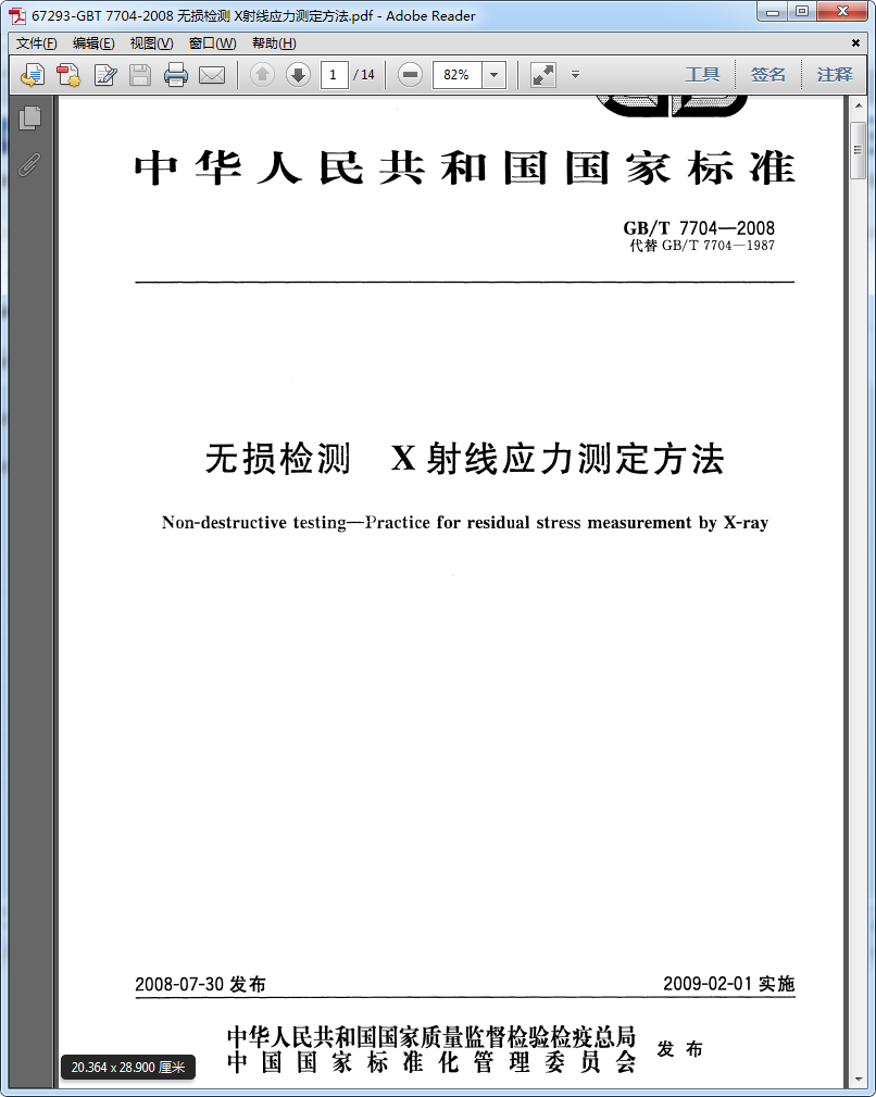 [GB/T 7704-2008]無損檢測 X射線應(yīng)力測定方法
