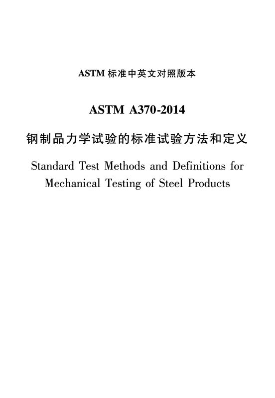 資料名稱: ASTM A370-2014 鋼制品力學試驗的標準試驗方法和定義(中文版)
