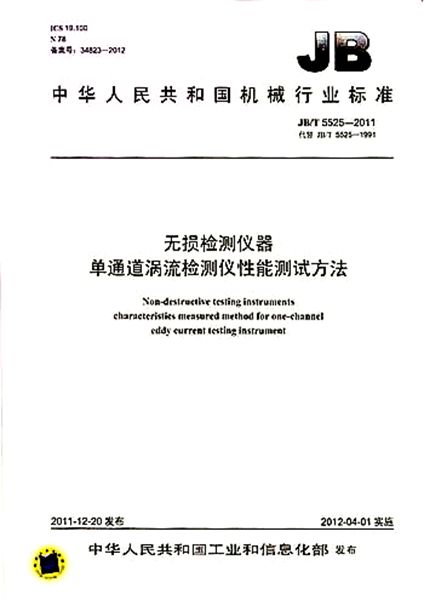JB/T 5525-2011 無損檢測儀器 單通道渦流檢測儀性能測試方法
