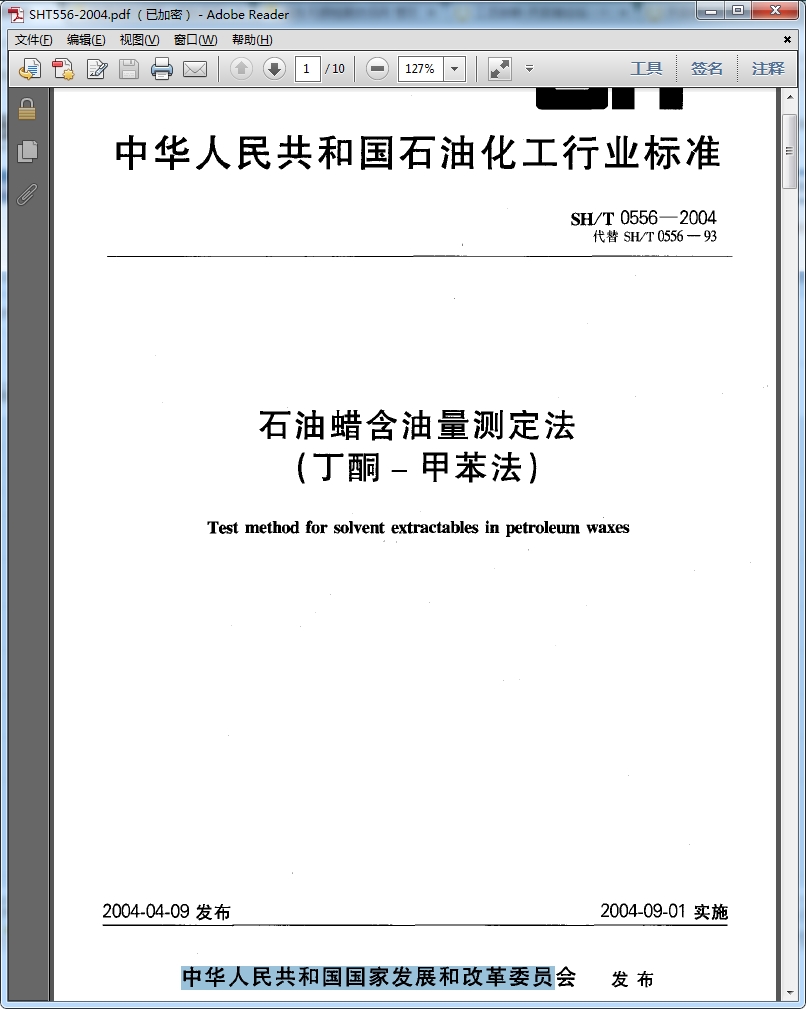[GB 24511-2009]石油蠟含油量測定法(丁 酮 一甲苯法)