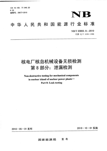 NB/T 20003.8-2010 核電廠核島機械設備無損檢測 第8部分:泄漏...