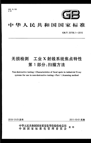 GB/T 25758.1-2010 無損檢測 工業X射線系統焦點特性 第1部分: