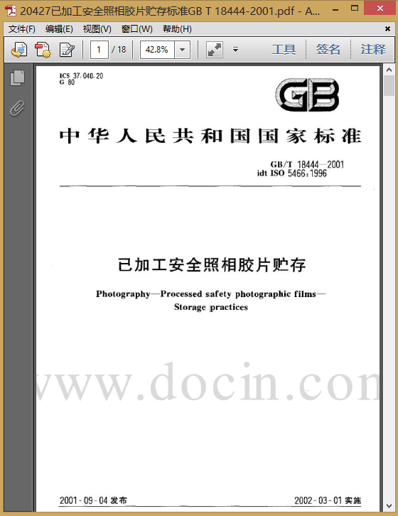 [GB/T 18444-2001]已加工安全照相膠片貯存