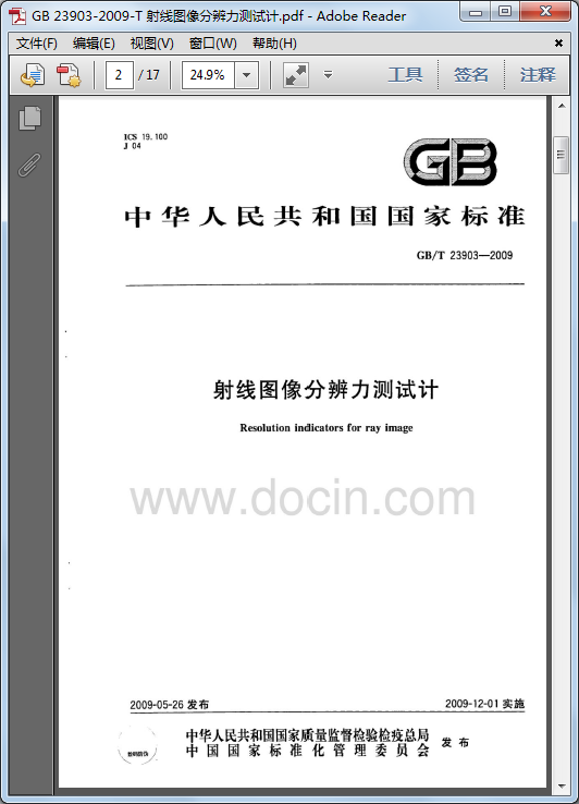 [GB/T 23903-2009]射線圖像分辨力測試計