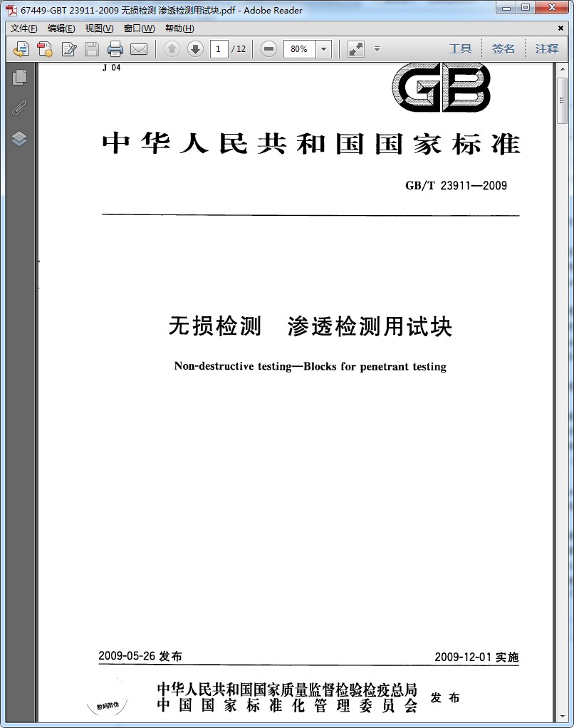 [GB/T 23911-2009] 無損檢測 滲透檢測用試塊