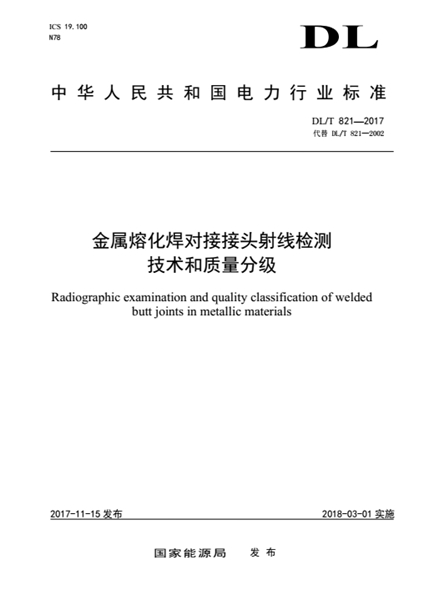DL/T 821-2017 金屬熔化焊對接接頭射線檢測技術和質量分 ...