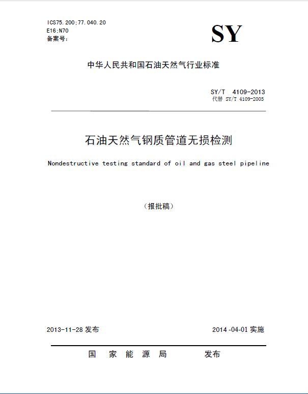 資料名稱: SY/T 4109-2013 石油天然氣鋼質管道無損檢測