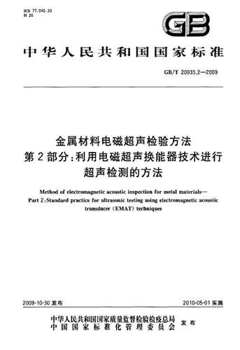 GB/T 20935.2-2009 金屬材料電磁超聲檢驗方法 第2部分:利用電...