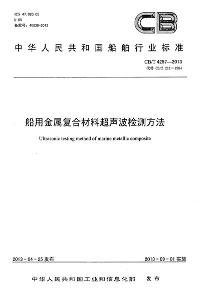 CB/T 4257-2013 船用金屬?gòu)?fù)合材料超聲波檢測(cè)方法
