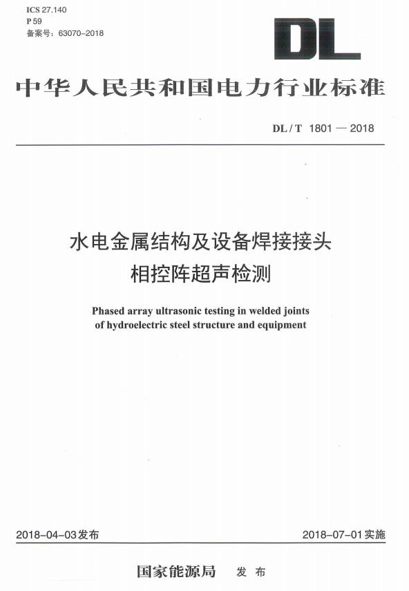 DL/T1801水電金屬結(jié)構(gòu)及設(shè)備焊接接頭相控陣超聲檢測(cè)
