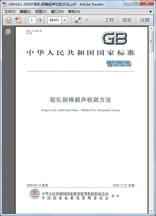 [GB/T 4162-2008]鍛軋鋼棒超聲檢測方法