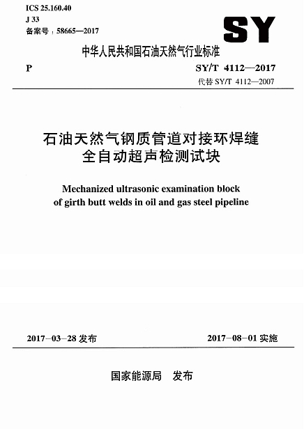 SY/T 4112-2017 石油天然氣鋼質(zhì)管道對(duì)接環(huán)焊縫全自動(dòng)超聲檢...