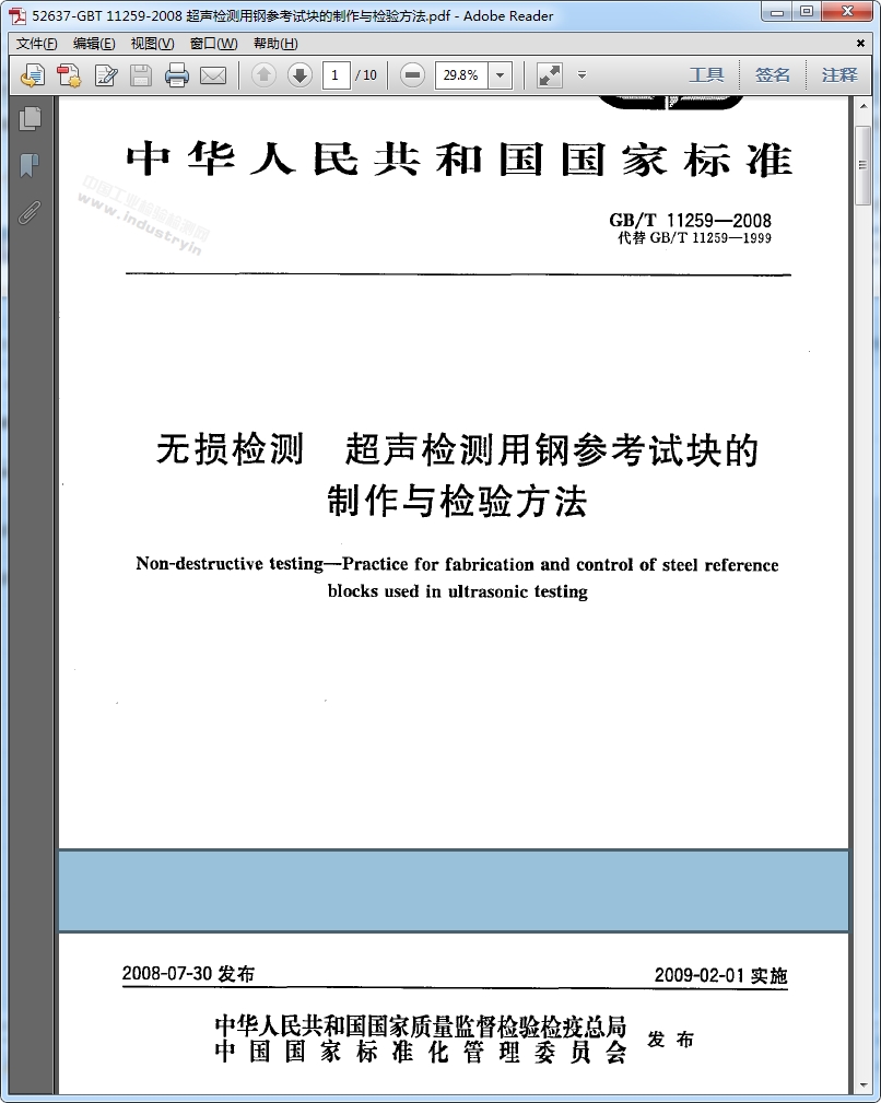 GB/T 11259-2008 無(wú)損檢測(cè) 超聲檢測(cè)用鋼參考試塊的制作與檢...