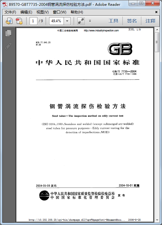 [GB/T 7735-2004鋼管渦流探傷檢驗方法