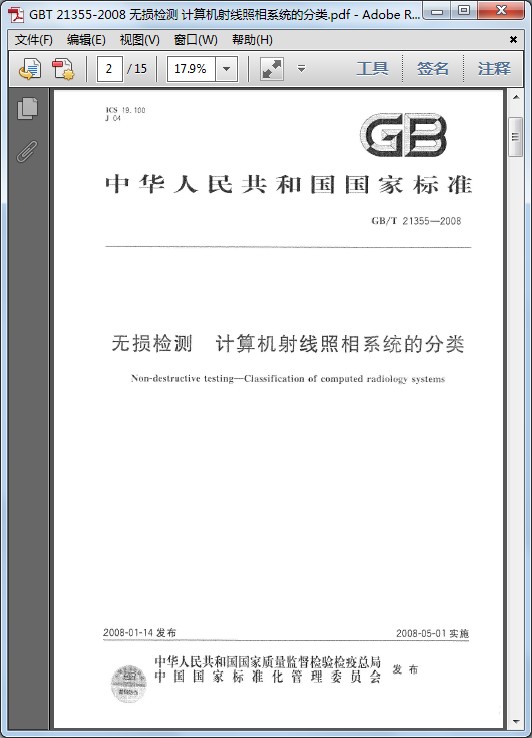 [GB/T 21355-2008]無損檢測 計算機射線照相系統的分類
