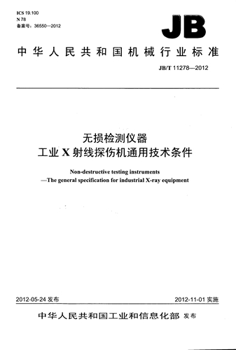 JB/T 11278-2012 無損檢測儀器 工業X射線探傷機 通用技術條件