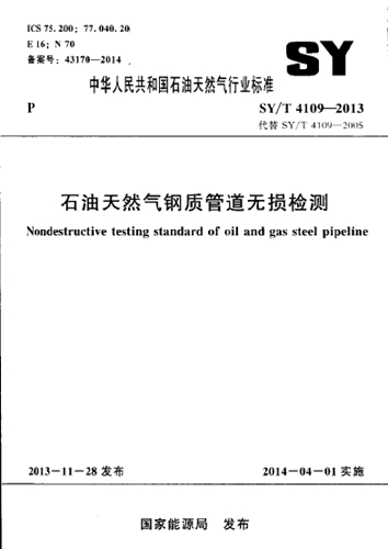 SY/T 4109-2013 石油天然氣鋼質管道無損檢測