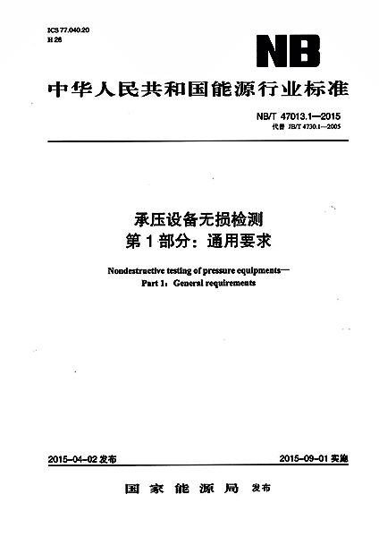 NB/T 47013.1-2015 承壓設備無損檢測 第1部分:通用要求