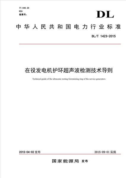 DL/T 1423-2015 在役發電機護環超聲波檢測技術導則