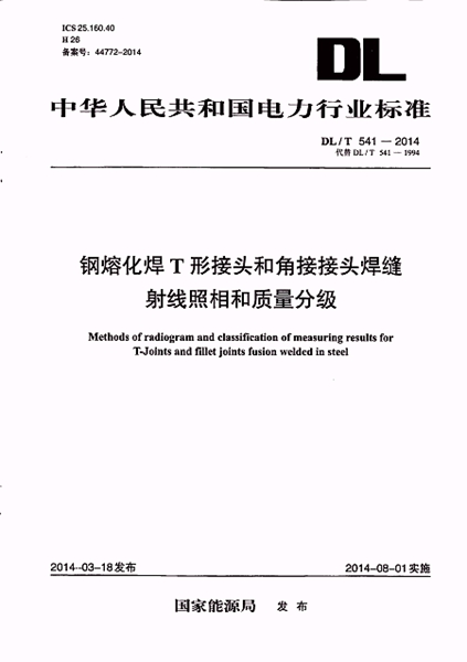 DL/T 541-2014 鋼熔化焊T形接頭和角接接頭焊縫射線照相 ...