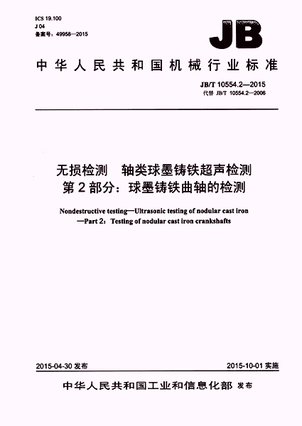 JB/T 10554.2-2015 無損檢測 軸類球墨鑄鐵超聲檢測 第2部分:...
