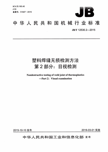 JB/T 12530.2-2015 塑料焊縫無損檢測方法 第2部分:目視 ...