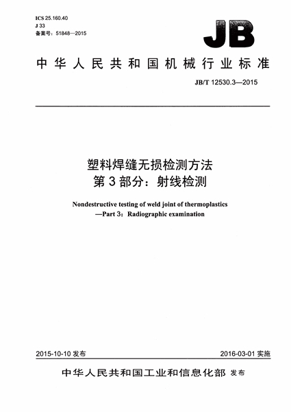 JB/T 12530.3-2015 塑料焊縫無損檢測方法 第3部分:射線 ...