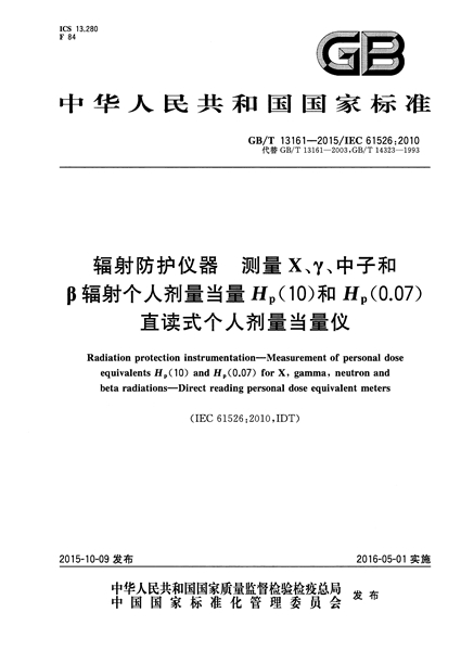 GB/T 13161-2015 輻射防護儀器 測量X、γ、中子和β輻射個人...